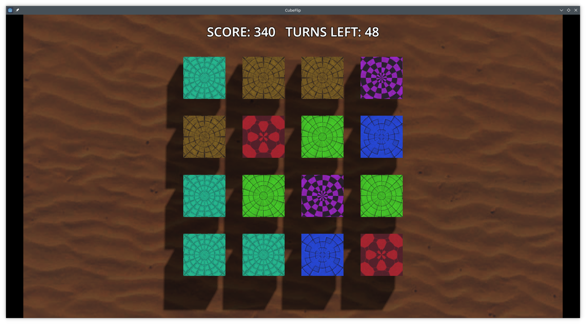 A grid of cubes sits on the board, and each move flips the selected cube by 90 degrees in the chosen direction. The cubes have colorful sides with distinct patterns, so every change is easy to see.
